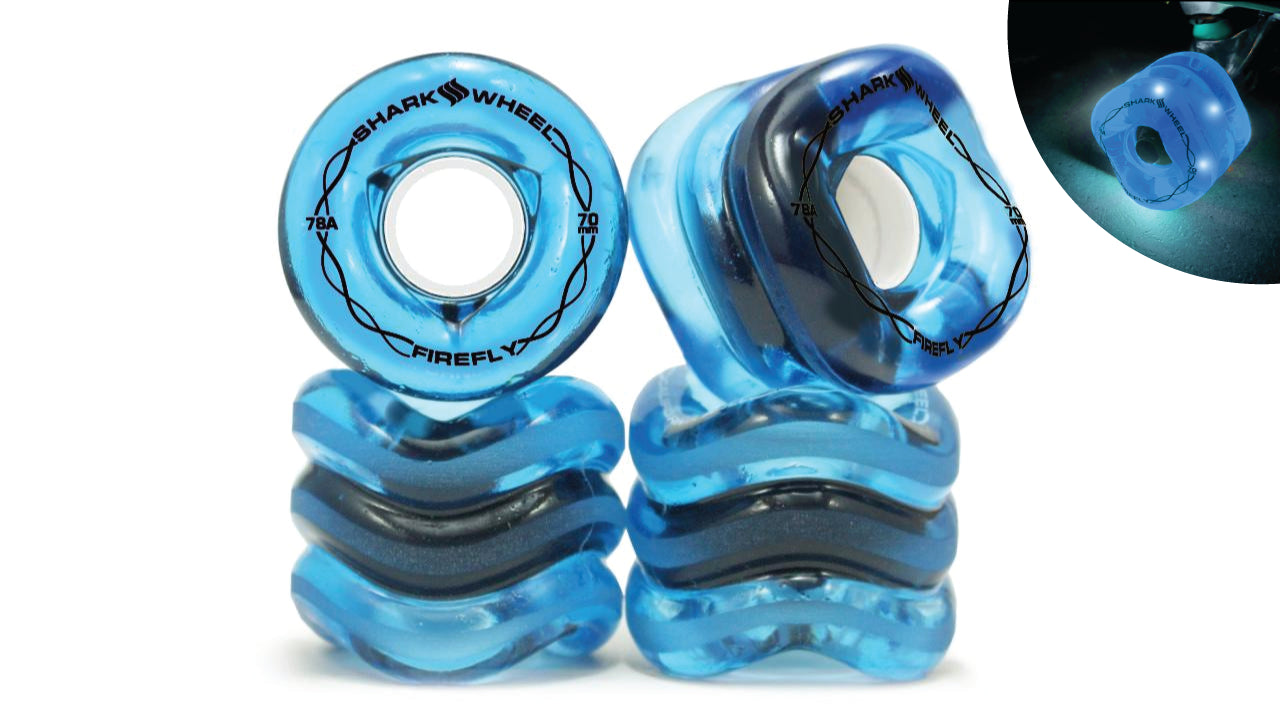 SHARK WHEEL 70MM, 78A FIREFLY - TRANSPARENT BLUE WITH BLUE LIGHTS