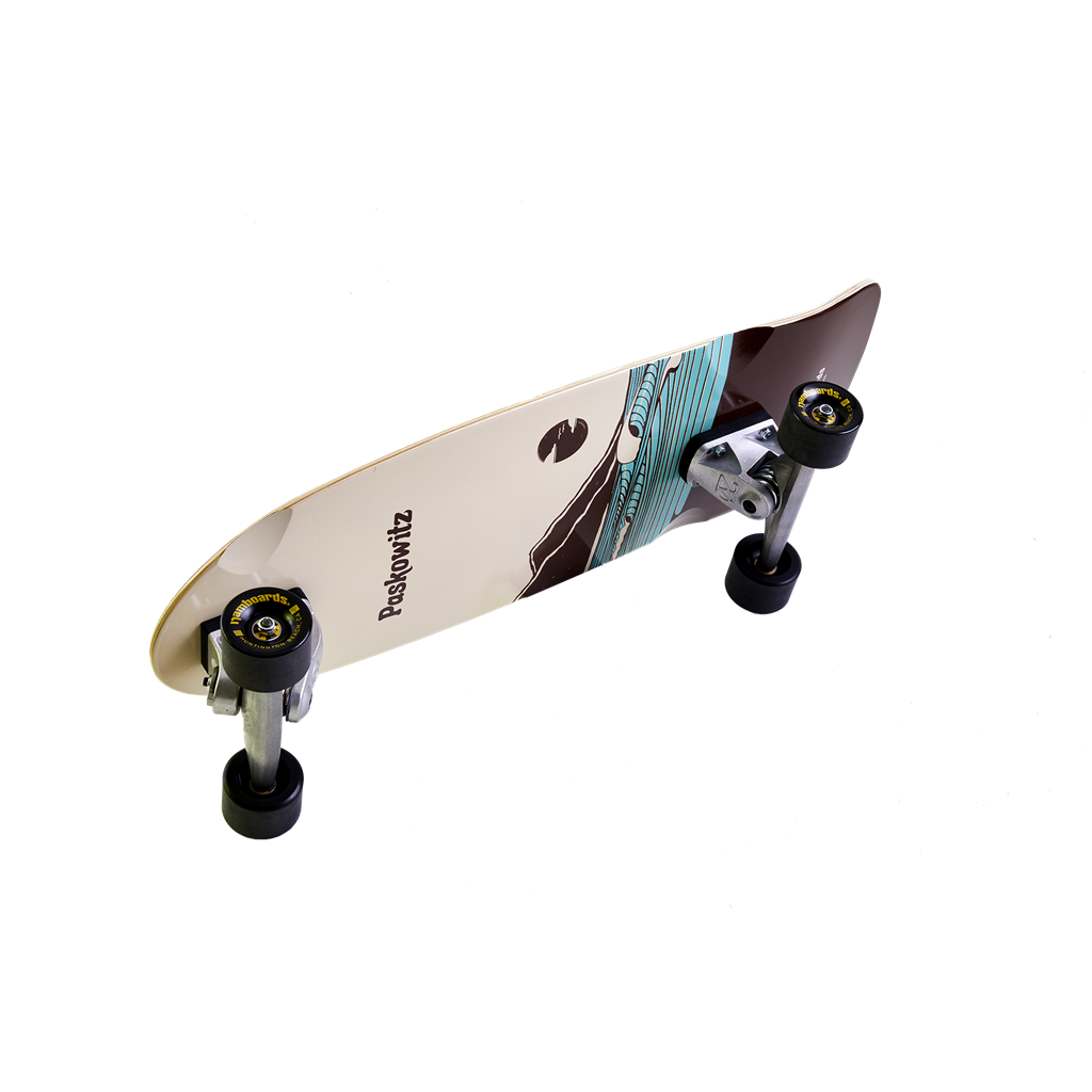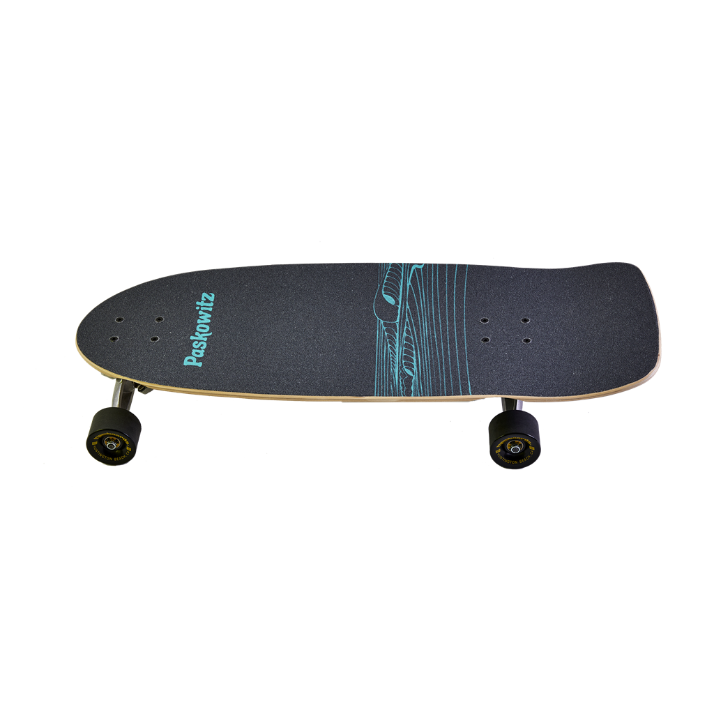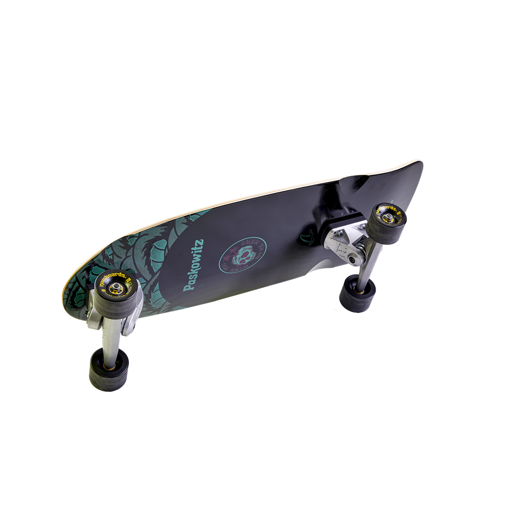 In honor of Dorian, the Paskowitz family and Hamboards launched the Paskowitz model. The deck has a slight concave, is 30” long and 11" wide. This allows for more stability, proper foot placement making it suitable for all ages and heights. The 17” wheelbase almost forces your stance to mimic the same stance on a surfboard. The HST 2.0 truck system sets this board apart from any other. The “Pasko” has a 40° pivot axis in the front, a 20° pivot axis in the rear, and both trucks have 180mm hangers and is more stable than other surf skates, all while still providing excellent pumpability.